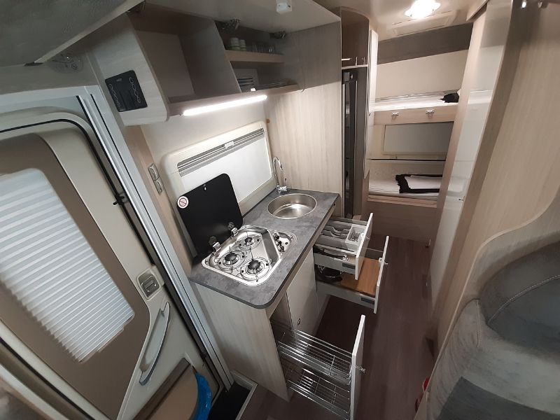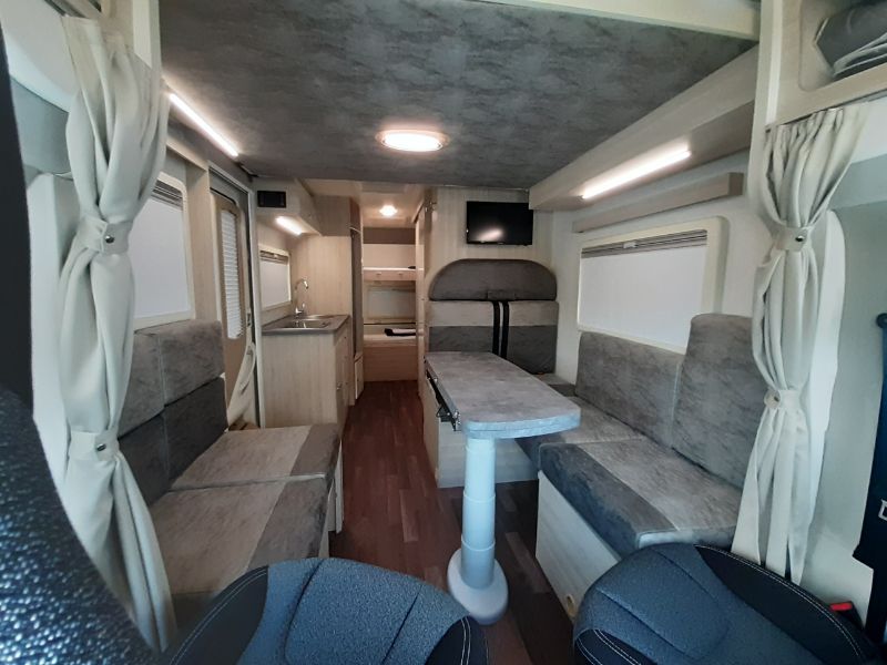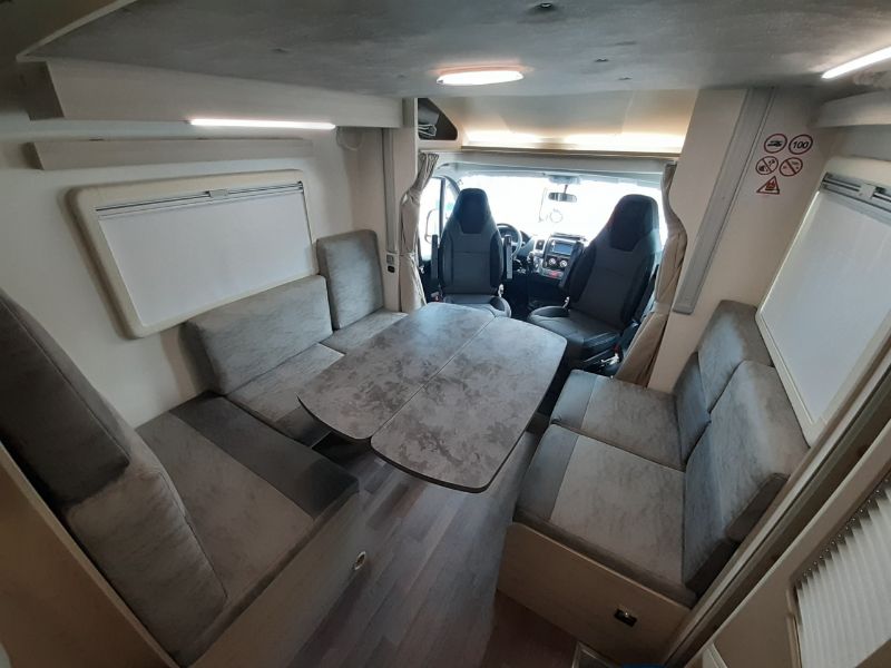 La autocaravana ilusion 760 de 2021 es un vehículo espacioso y versátil. Las familias numerosas aventureras o grupo de amigos numerosos podrán disfrutar de sus viajes de una manera inolvidable. Es ideal para parejas y familias gracias a su distribución interior con 6 plazas tanto para dormir como para viajar.