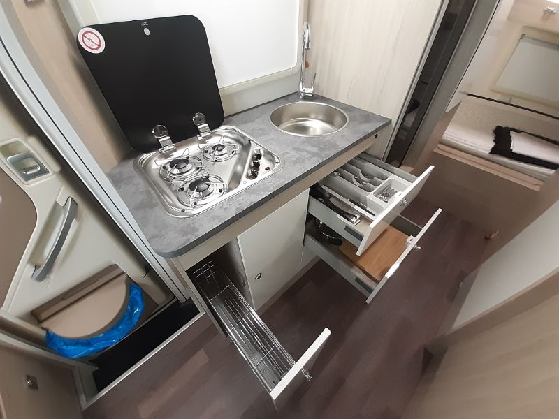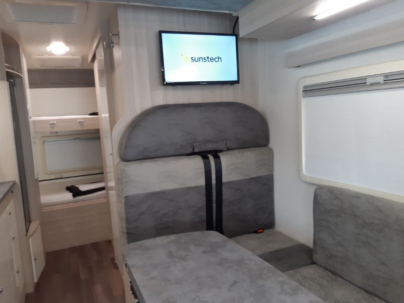 Todo lo que necesitas para disfrutar del viaje en la autocaravana Ilusión 760 2021, menos de 7 metros de longitud . Una autocaravana única en el mercado autocaravanista, al reunir características tan atractivas como el doble baño 4 camas dos de ellas de matrimonio y un amplio garaje.