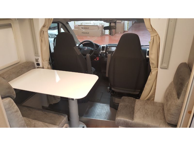 • Asientos comedor en L (según modelos) con banqueta lateral o asiento adicional, espacio para 5 personas, en opción: cinturón para la 5ª plaza (según modelos)