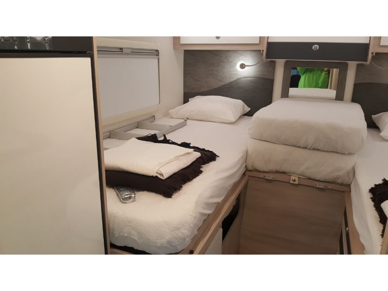 • Cama modelos cama en isla: con cabecero deslizante para mayor espacio (modelos 695 y 730)